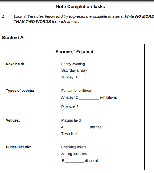The major difference is how the information is laid out. In note completion the gaps are in vertical order so may be slightly easier to follow.