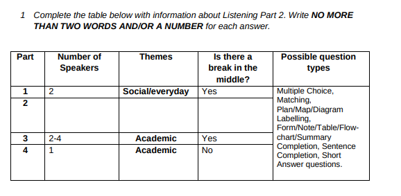 In a table completion question you will be given a partially completed table, you will need to fill in the missing information.